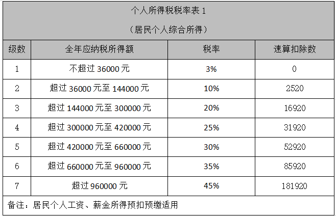 附录1:税率表