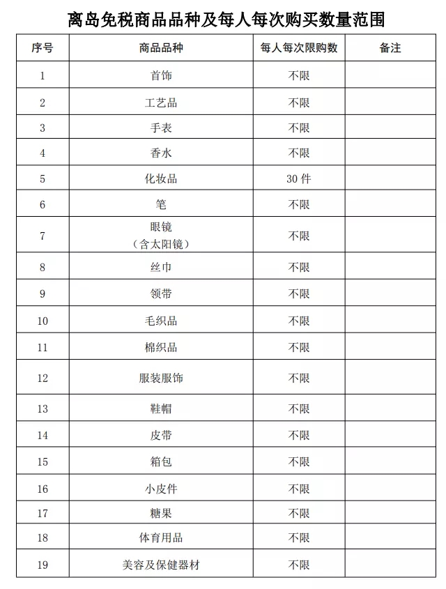 2020年6月1日,党中央、国务院印发《海南自由贸易港建设总体方案》,提出“放宽离岛免税购物额度至每年每人10万元,扩大免税商品种类”。为落实《总体方案》要求,进一步释放政策效应,高质量建设自由贸易港,经国务院同意,财政部、海关总署、税务总局发布《关于海南离岛旅客免税购物政策的公告》,自2020年7月1日起实施。公告明确:离岛旅客每年每人免税购物额度为10万元,不限次;扩大免税商品种类,增加电子消费产品等7类消费者青睐商品;仅限定化妆品、手机和酒类商品的单次购买数量;旅客购买商品超出免税限额、限量的部分,照章征收进境物品进口税;具有免税品经销资格的经营主体可按规定参与海南离岛免税经营。