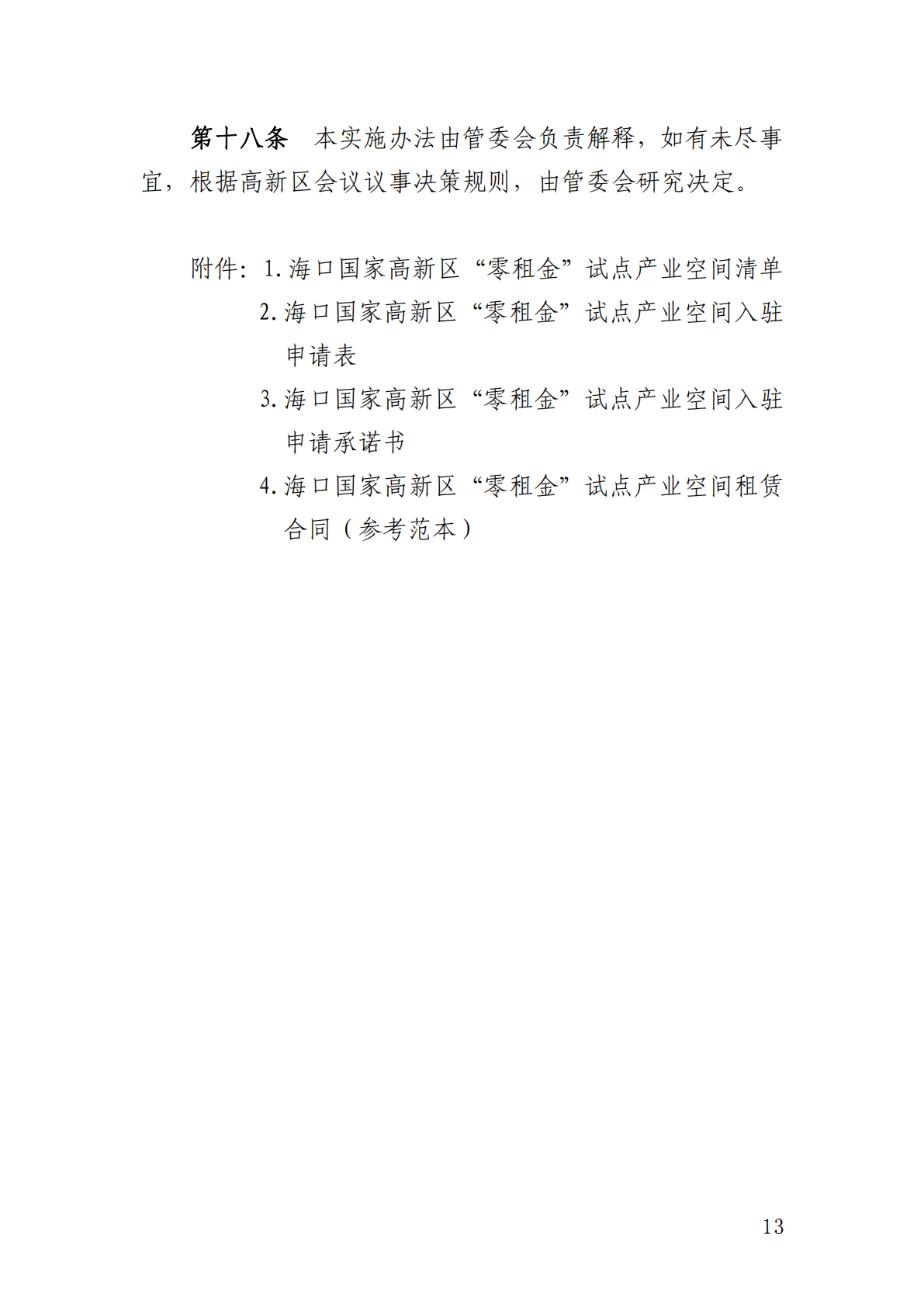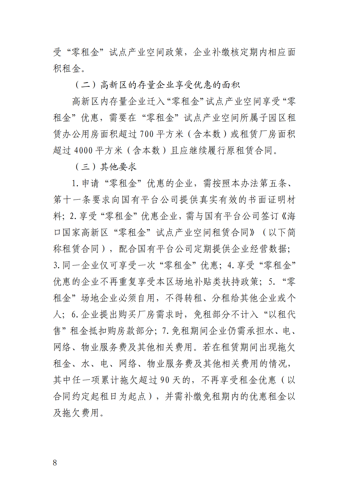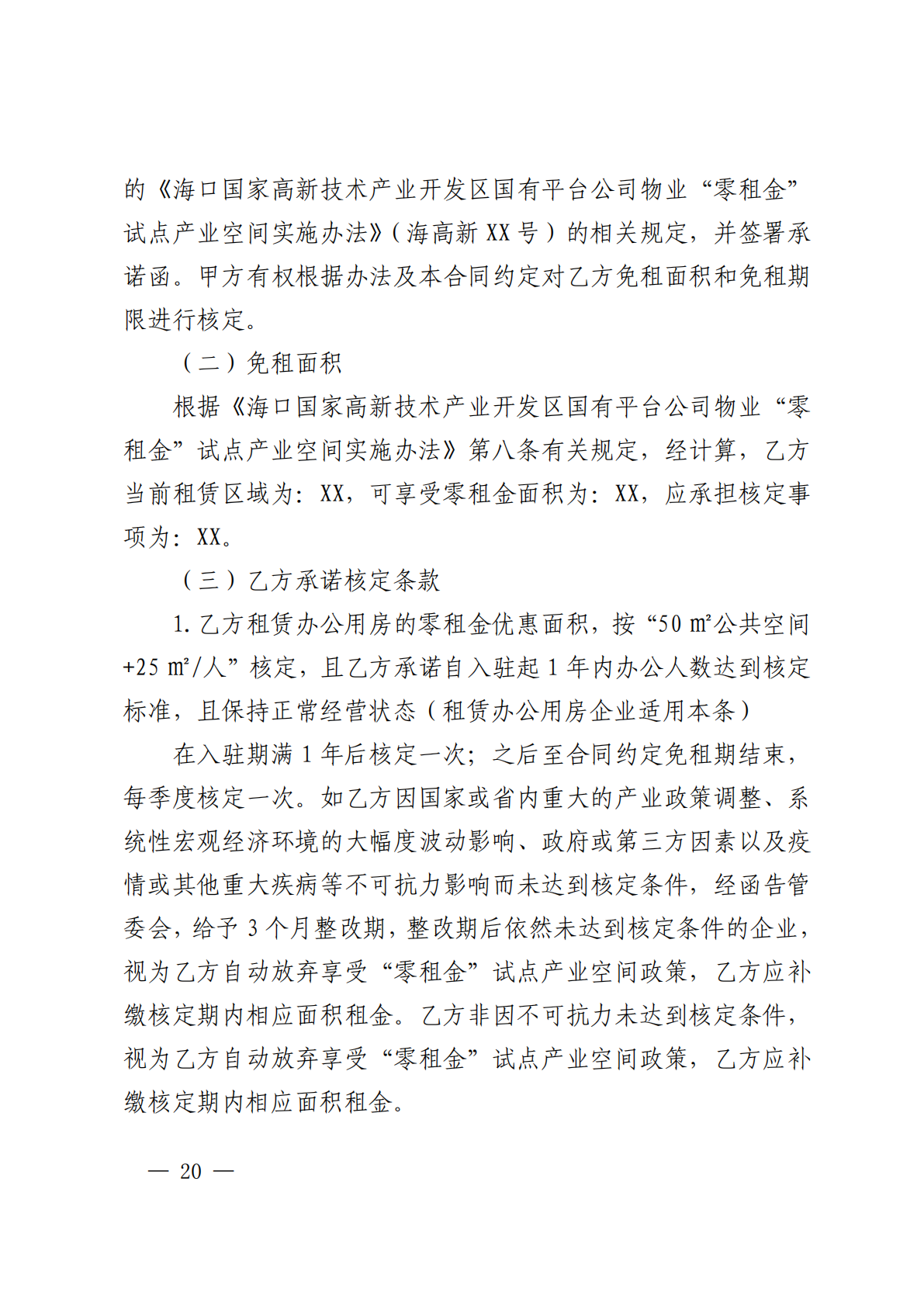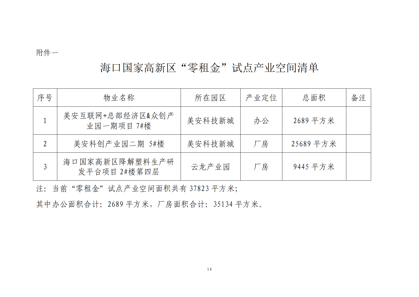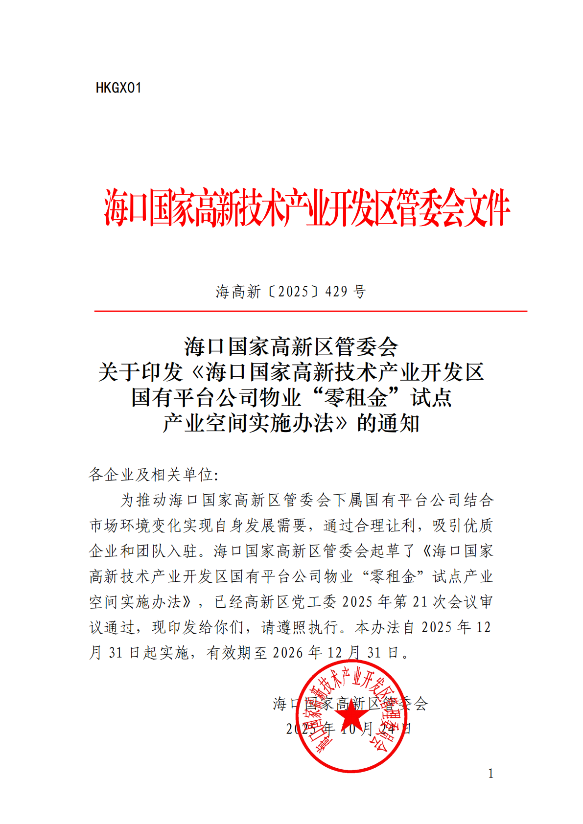 关于印发《海口国家高新技术产业开发区国有平台公司物业“零租金”试点产业空间实施办法》的通知