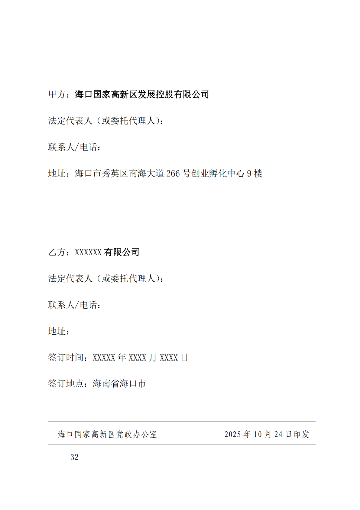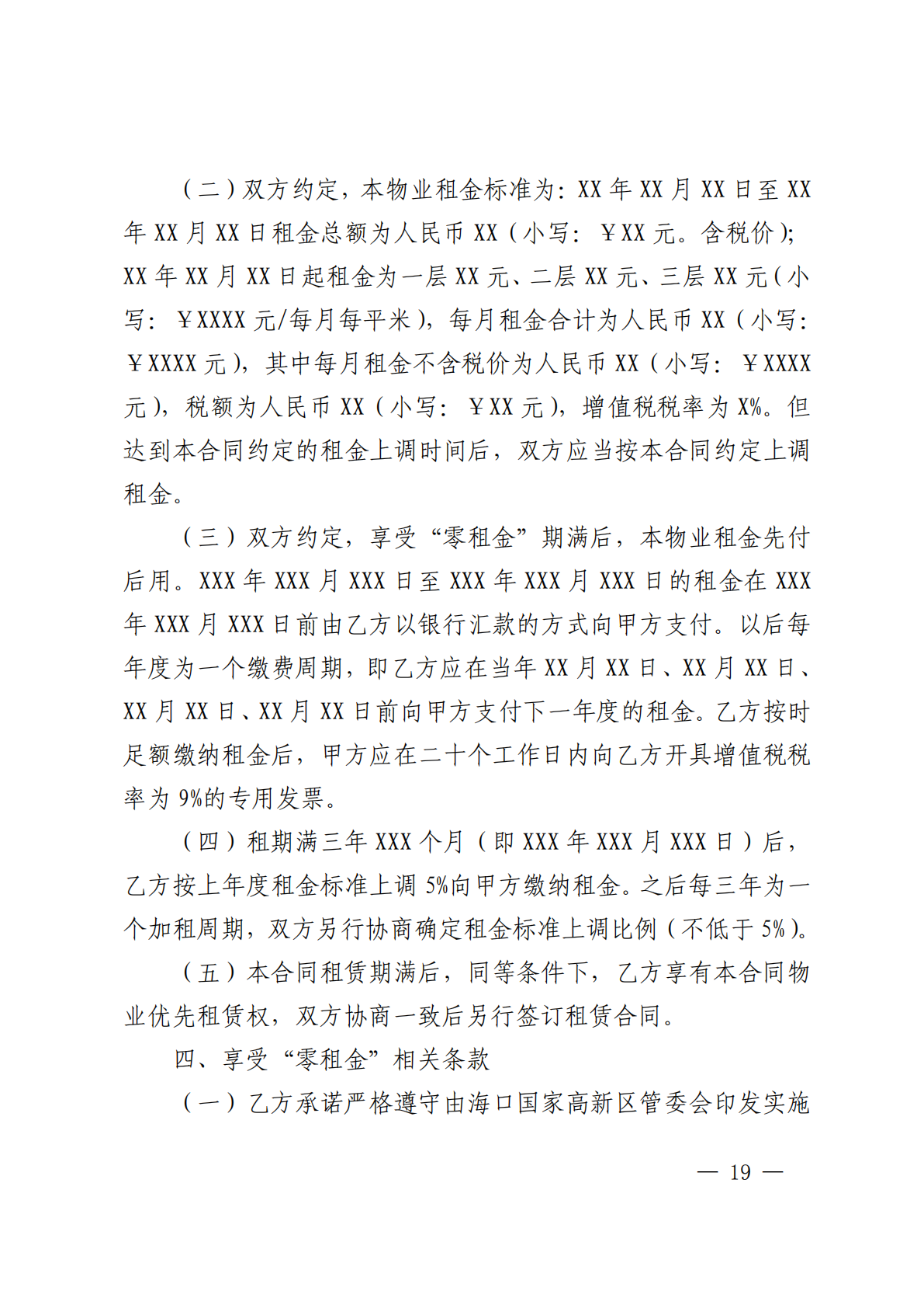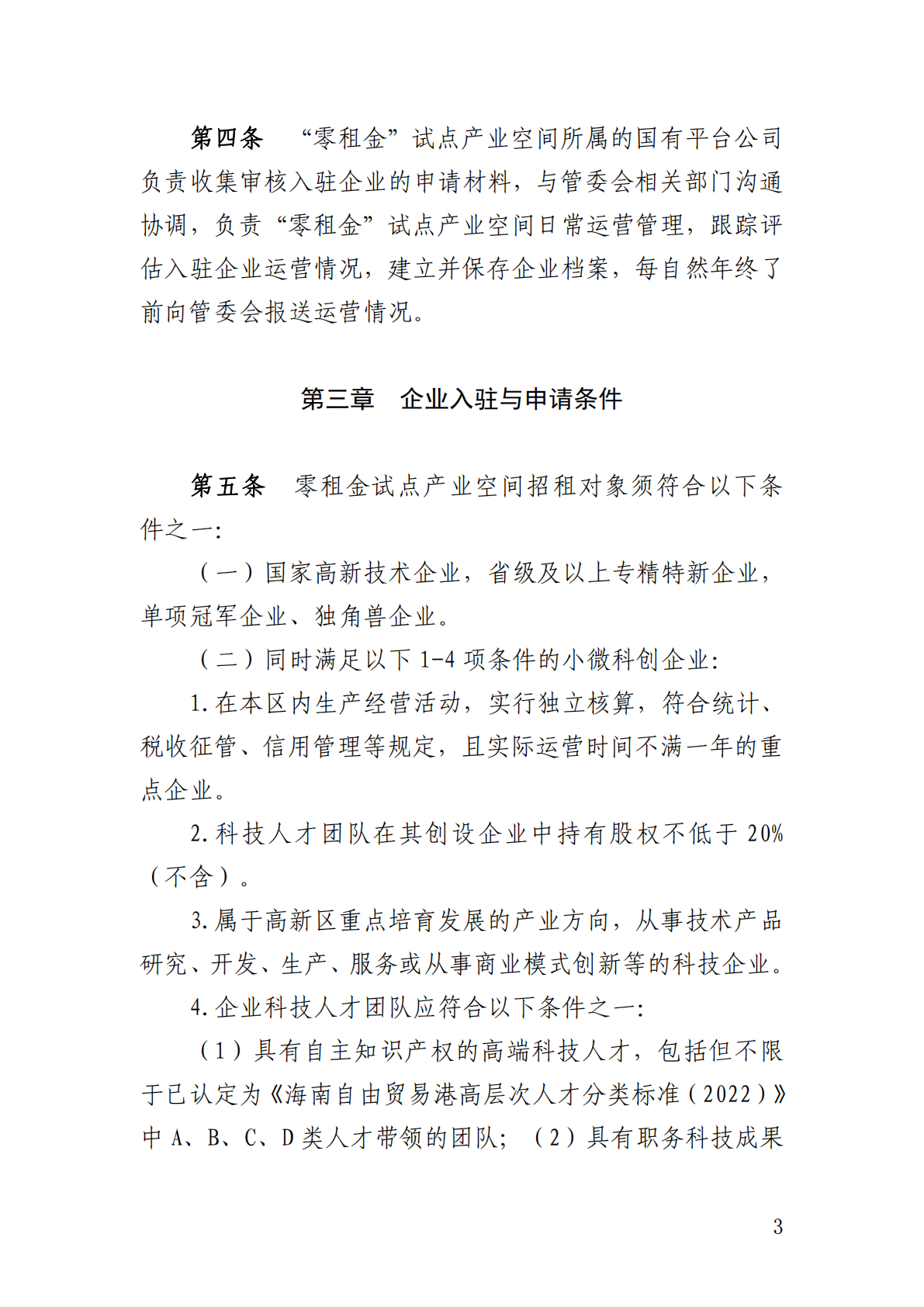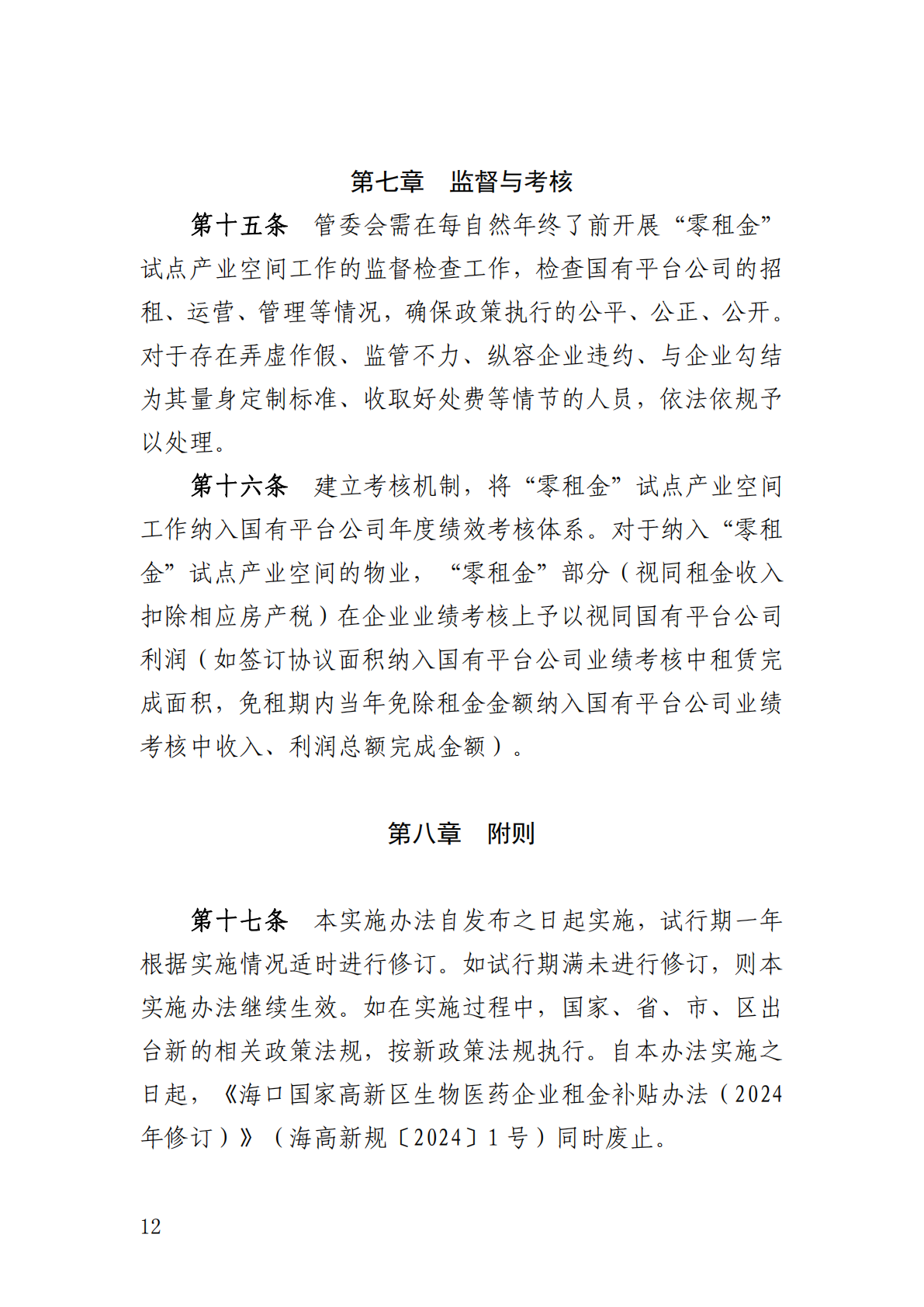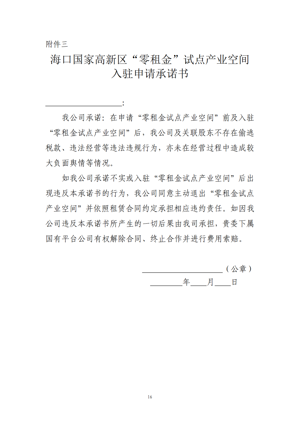 关于印发《海口国家高新技术产业开发区国有平台公司物业“零租金”试点产业空间实施办法》的通知