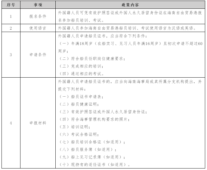 海南海事局《外国籍人员参加海南自由贸易港船员培训、考试和申请船员证书管理办法》(2021年10月29日)